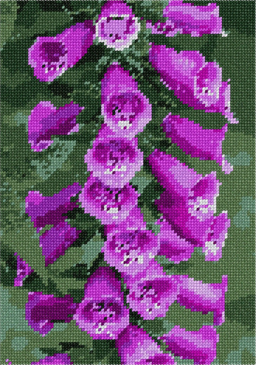 Bell shaped floral beauty. Grow Foxglove: Part sun to light shade, rich, moist soil. Tubular flowers attract bees and hummingbirds, are excellent for cutting. Plants are toxic; show excellent deer and rabbit resistance. Easy to grow, will frequently self sow. Flowers and floral design are among the most popular needlepoint designs. People have been stitching flowers and floral motifs for hundreds of years. Flowers are bright and pleasant, and most have underlying meanings to them.
