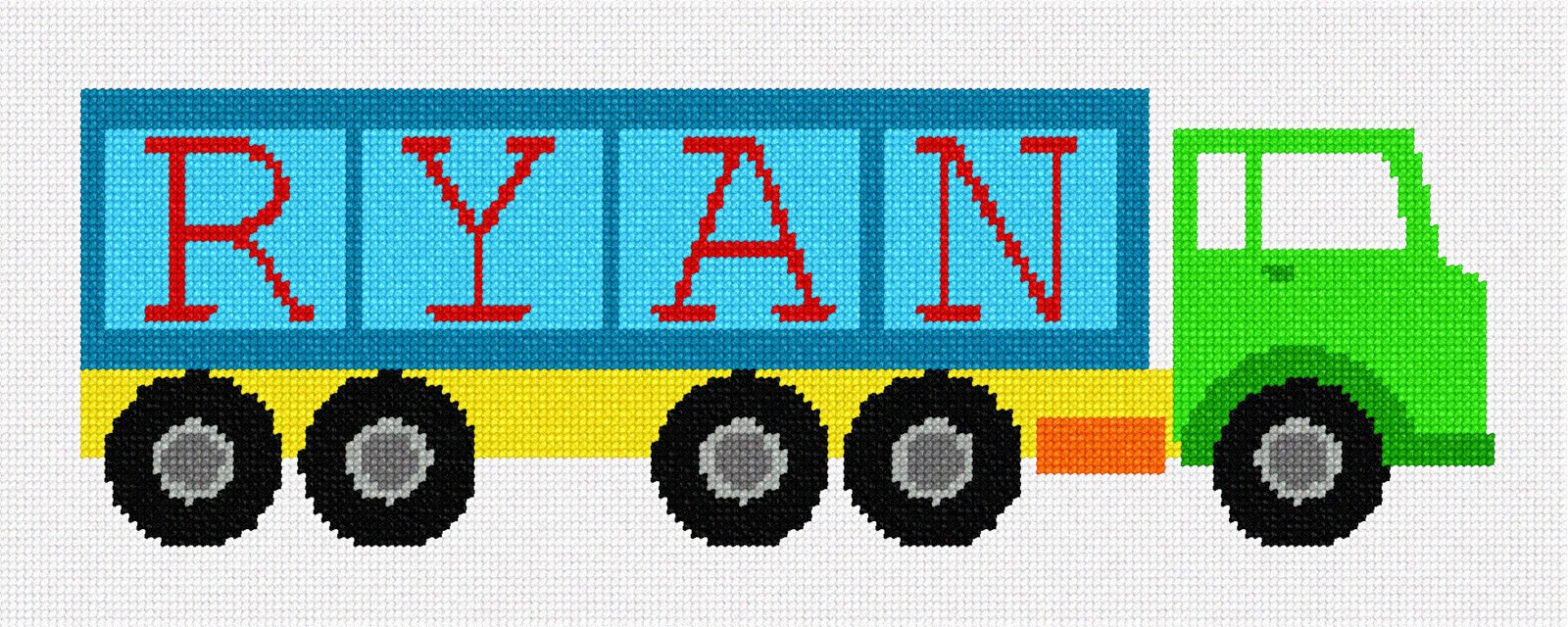 Is your little boy fascinated by all things trucks? Stitch one with his name on it. Finish as a wall hanging, pillow, or even an ornament.