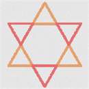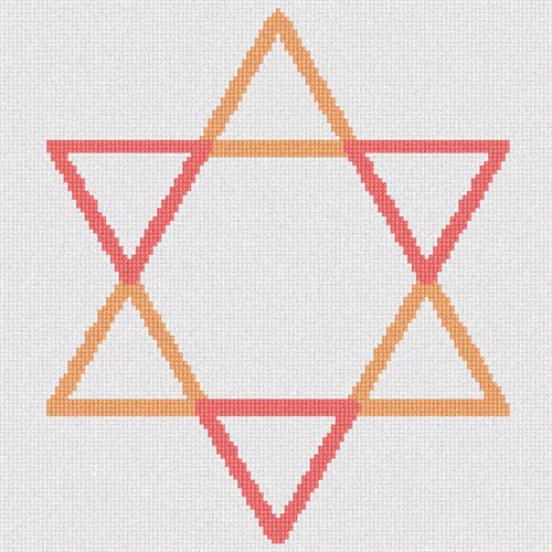 Star of David, composed of 6 triangles in two pastel colors. The Star of David or Magen David (literally, Shield of David), as it is referred to in Hebrew, is the most common symbol for expressing Jewish identity today. The Hebrew name for the symbol – a hexagram formed by two overlapping triangles, one pointed upward and the other downward – comes from its supposed resemblance to King David’s shield. However, use of the Star of David as a Jewish symbol only became widespread in 17th-century Europe, when it was used displayed on synagogues to identify them as Jewish places of worship.