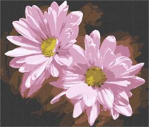 Twin pink daisies, opening up their delicate petals to soak up more sun.