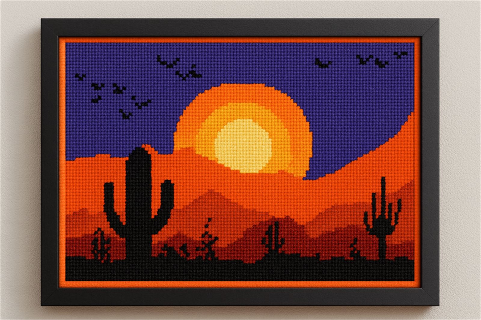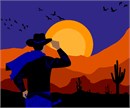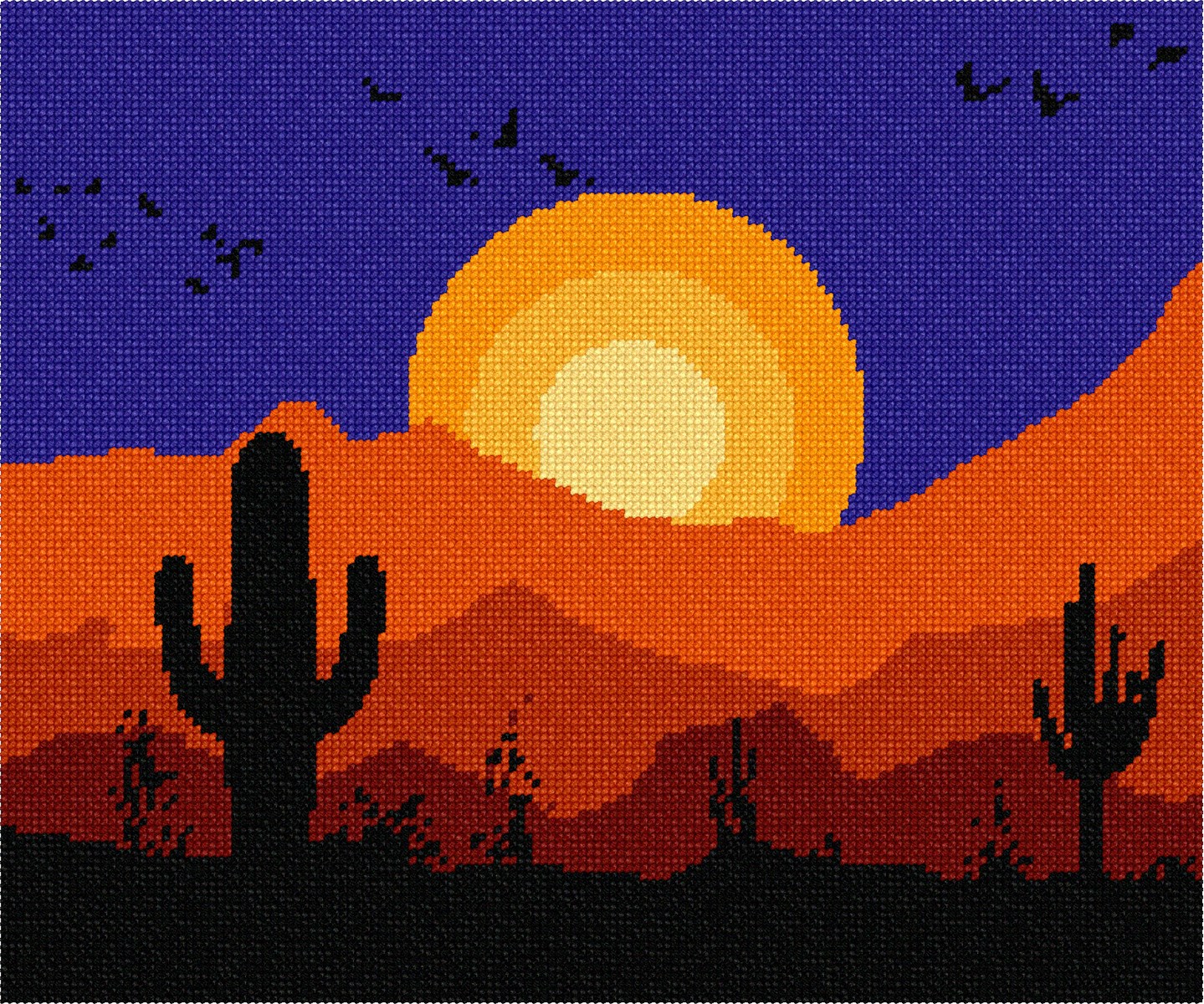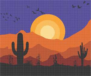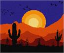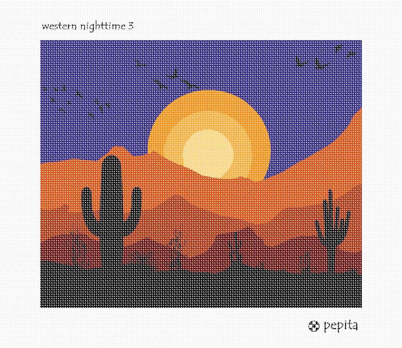 It's dark at night in the wild western desert. These cacti and deser bushes are silhouette in the dark night. See coordinating Western Nighttime 1 and 2 designs.