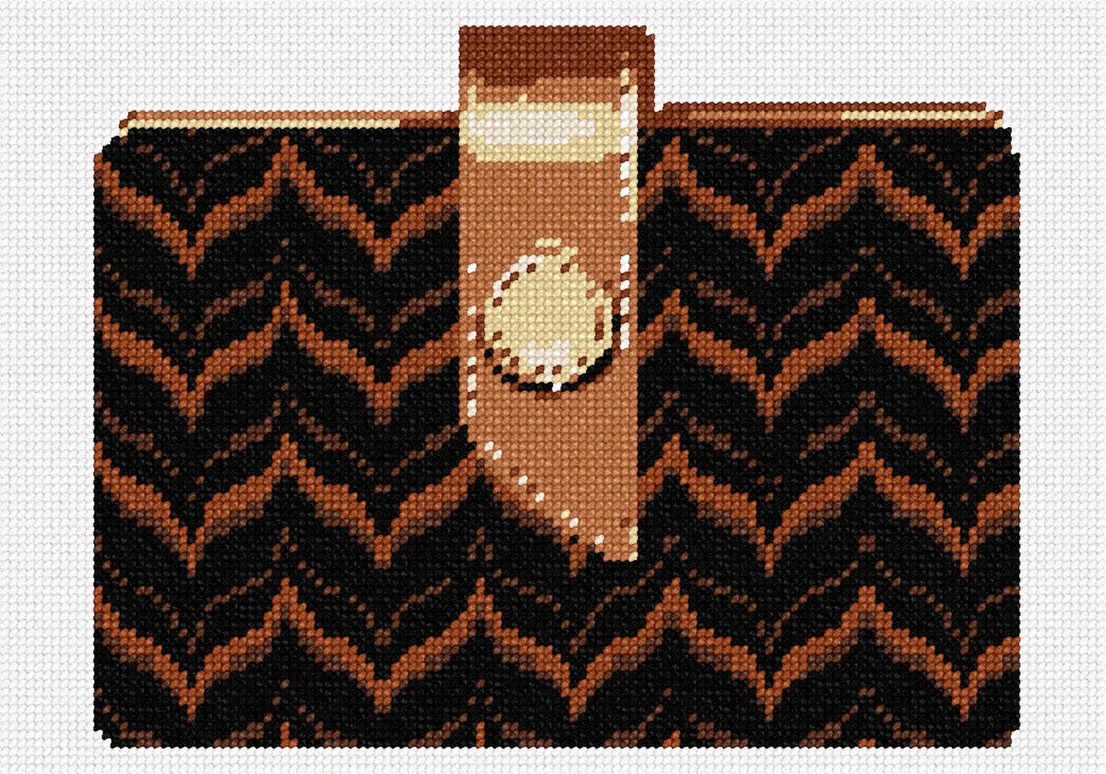 Welcome to our Women's Bargello Collection. Women aren't getting to use their designer handbags or go out to dine with their friends. Their designer heels and coordinating purses are sitting at home gathering dust. They might as well be stitched! Part of an ensemble of handbag, clutch, wallet, watch, coffee cup, and elegant high heel shoe.