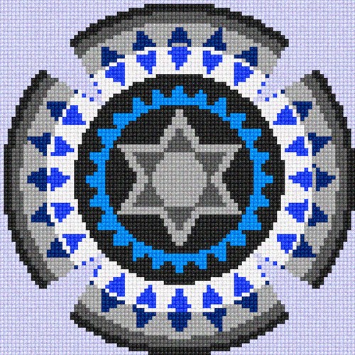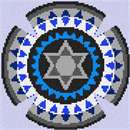 Kippah using a circular toothy pattern in vivid and contrasting colors. A kippah is a brimless cap, usually made of cloth, traditionally worn by Jewish males to fulfill the customary requirement that the head be covered. It is worn by men in Orthodox communities at all times.