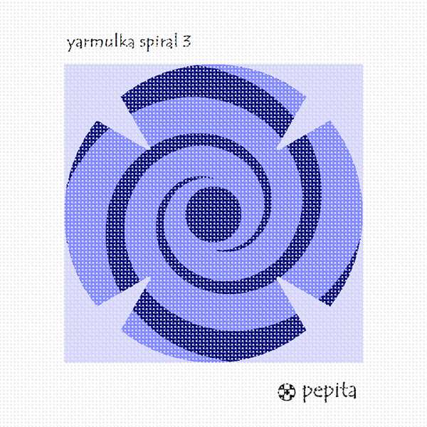 Kippah with spiral design in shades of lavender. A kippah is a brimless cap, usually made of cloth, traditionally worn by Jewish males to fulfill the customary requirement that the head be covered. It is worn by men in Orthodox communities at all times.